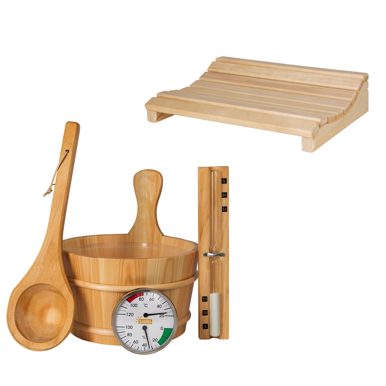 Lieferumfang des 5-teiligen Saunasets: