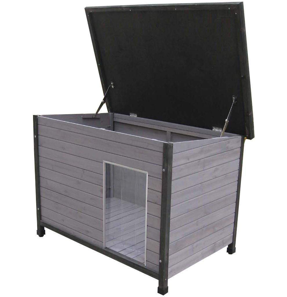 Moderne Holz-Hundehütte mit Flachdach. grau lasiert, 106 x 69 x 82 cm