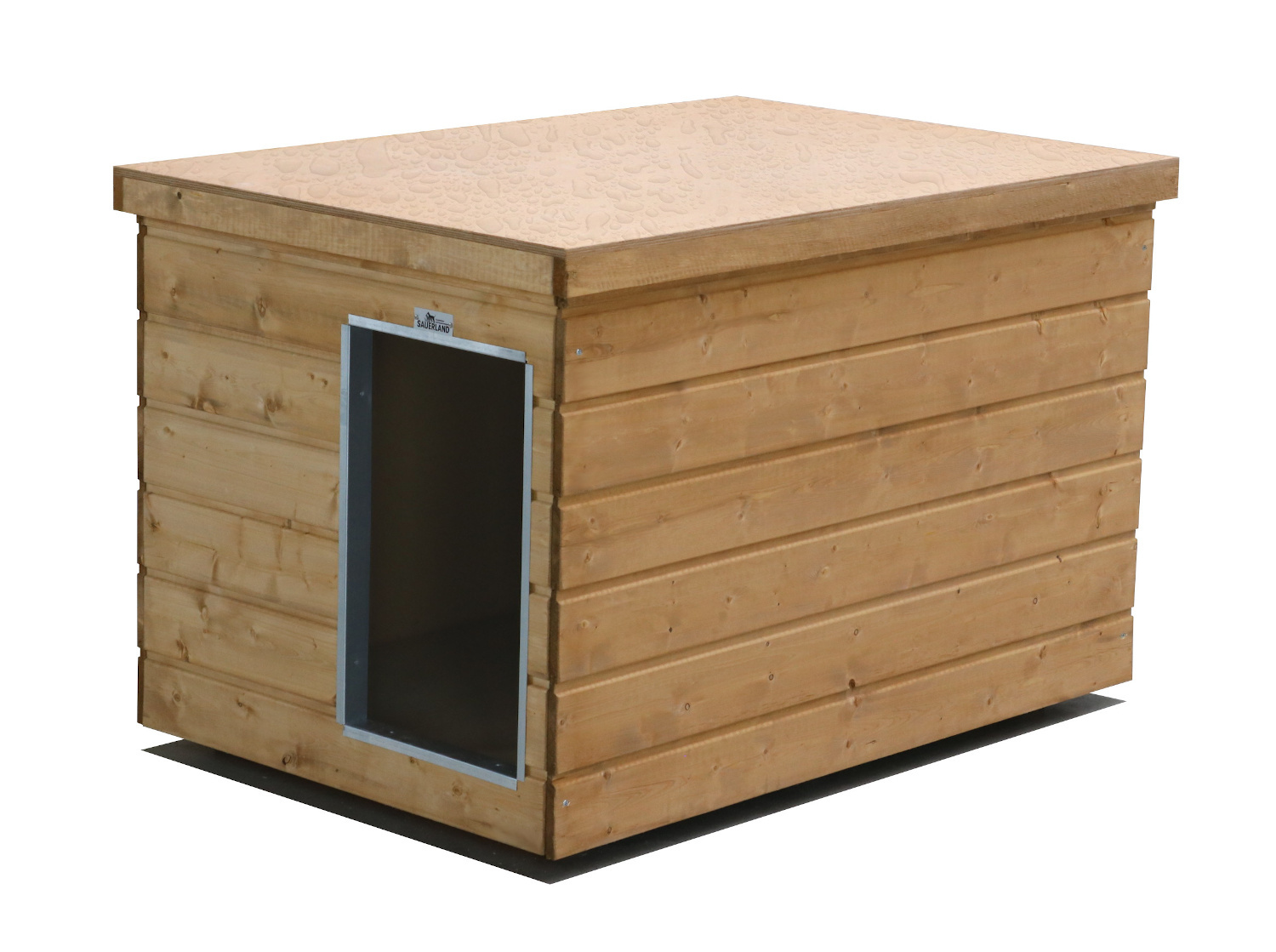 Original SAUERLAND Holz-Hundehütte braun imprägniert | Flachdach Dickschicht | Eingang Schmalseite | Größe Lassie