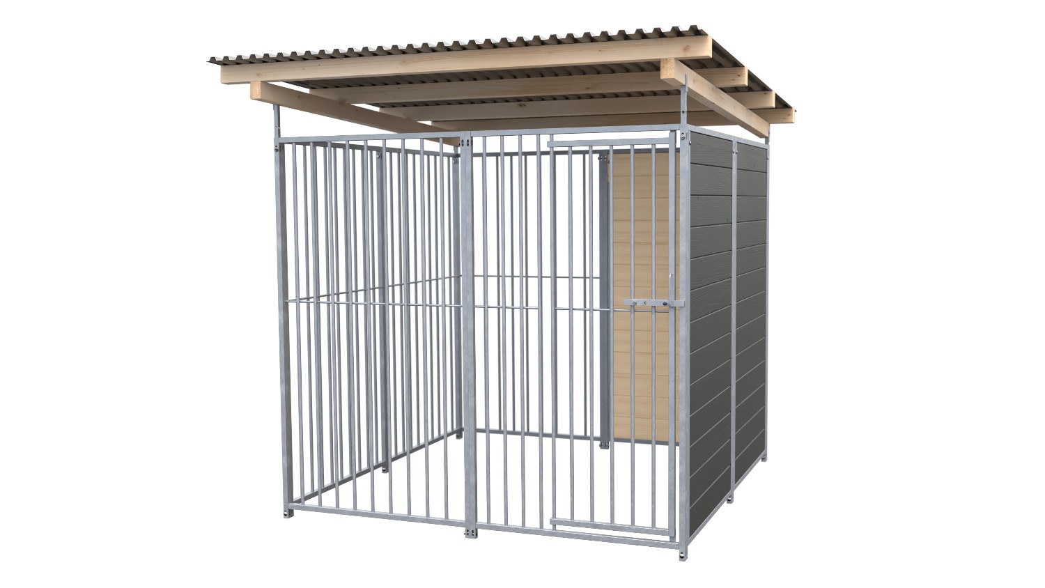 SAUERLAND Hundezwinger 2 x 2 m | 1,5-seitig geschlossen | graphitgrau | Rohrstab Abstand 8 cm