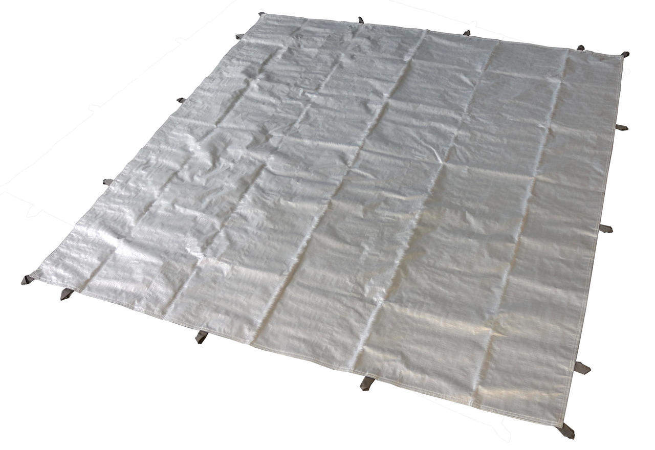 Sandkasten-Abdeckplane aus grauem Bändchengewebe, mit Abmessungen von 170 x 170 cm passend auch für größere Sandkästen. Umlaufend mit praktischen Schlaufen versehen, zum Verzurren um den Sandkasten mittels einer Schnur. Bei Nichtgebrauch platzsparend zusammenfaltbar.
