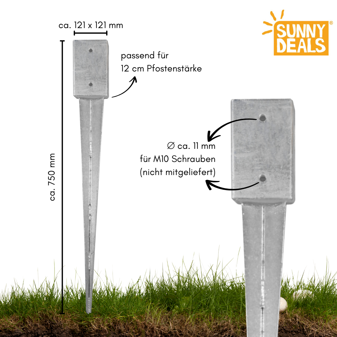 Set 3x Einschlaghülsen verzinkt 71 x 71 x 750 mm für 7 x 7 cm Pfosten