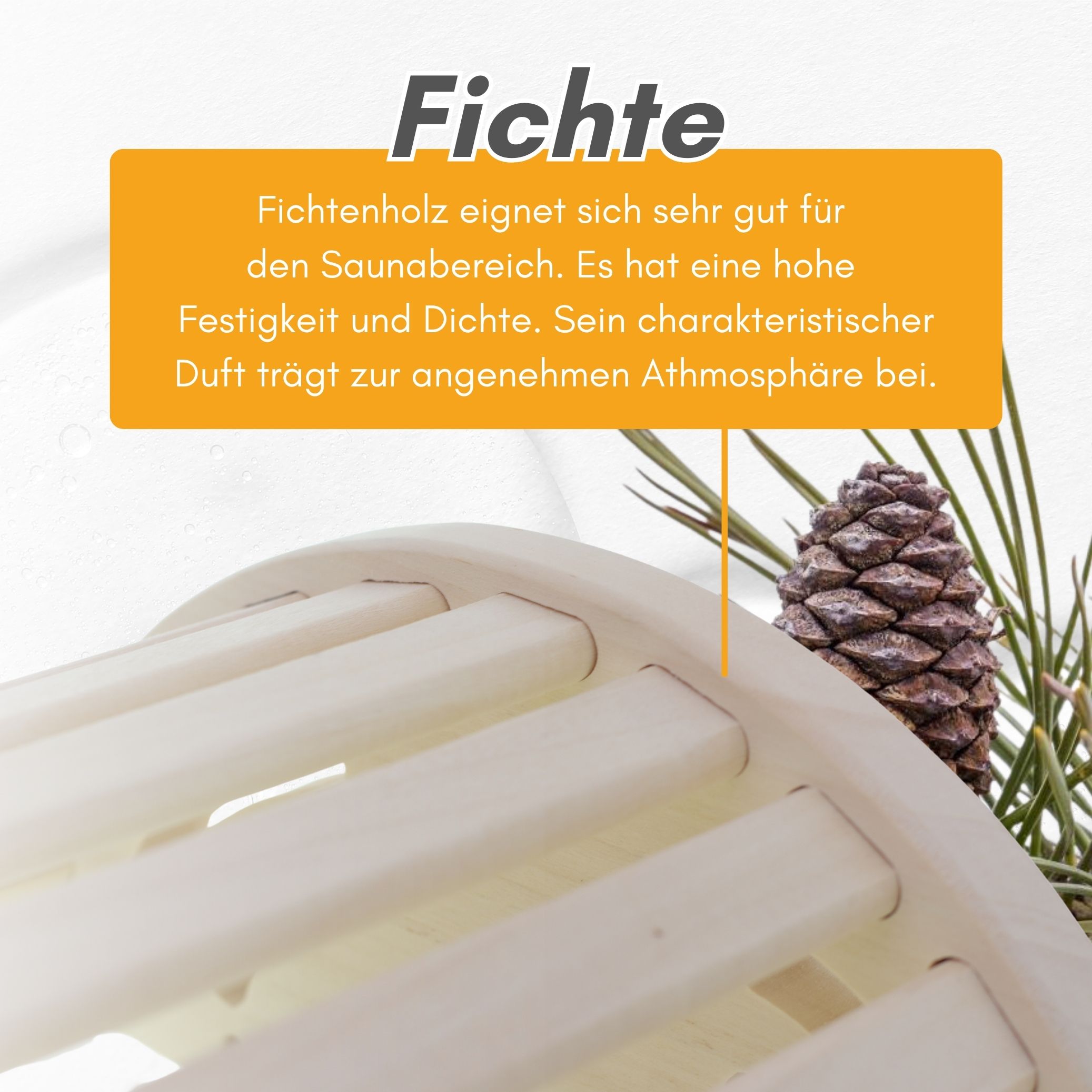 - Natürliches Material: Hitzebeständiges Fichtenholz mit geringer Wärmeleitfähigkeit