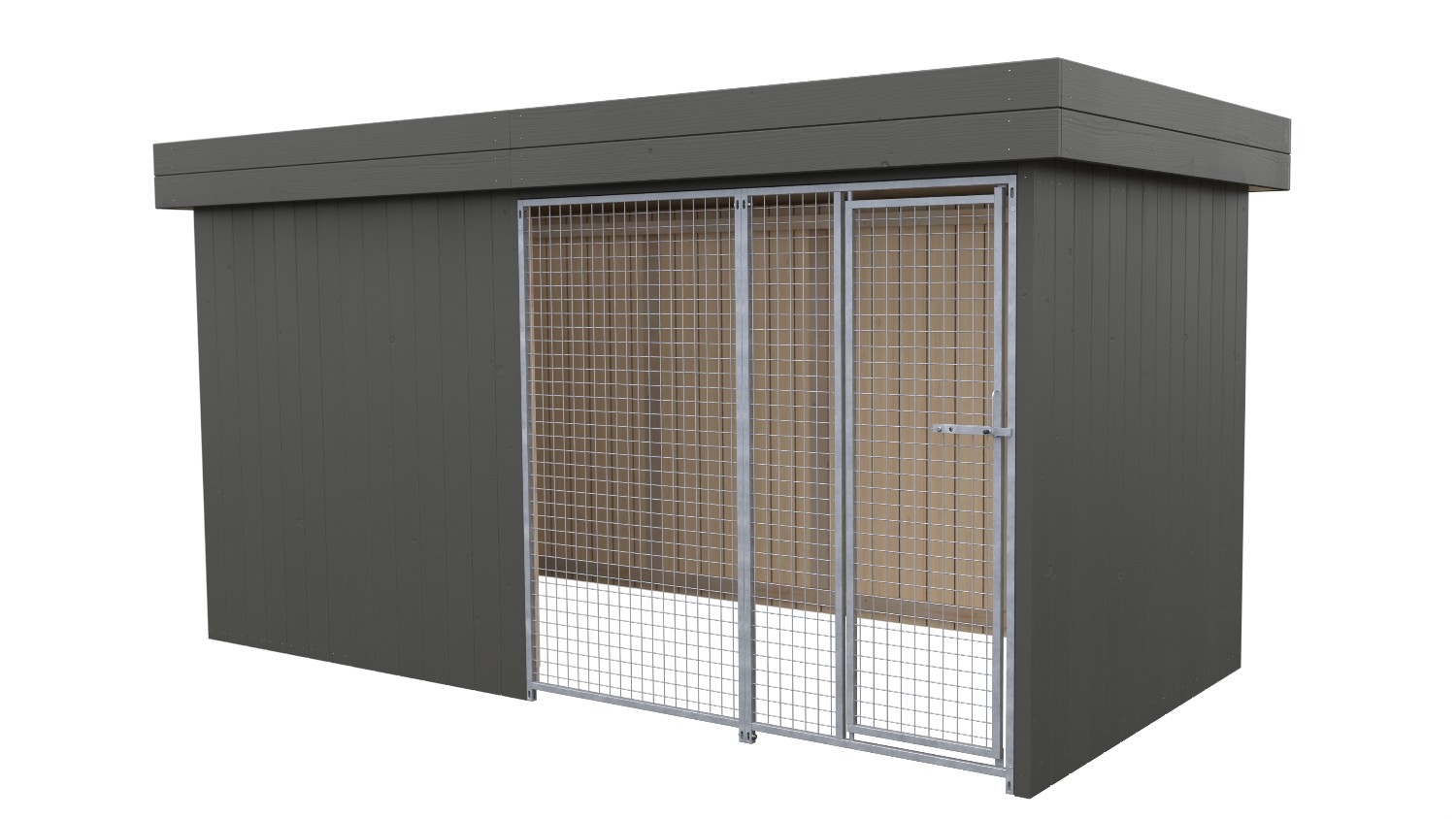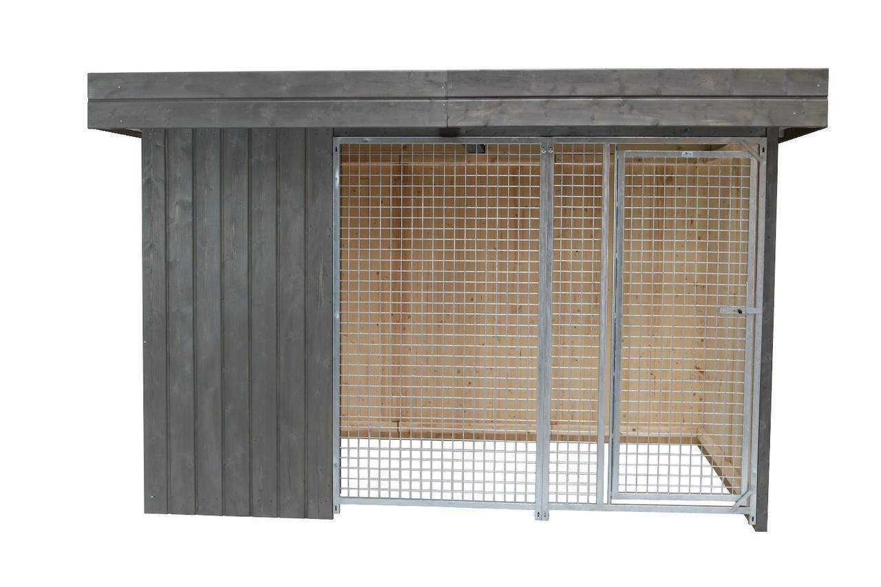 Villa Holz-Hundezwinger 2 x 4 m | Flachdach | Graphitgrau | Gitter