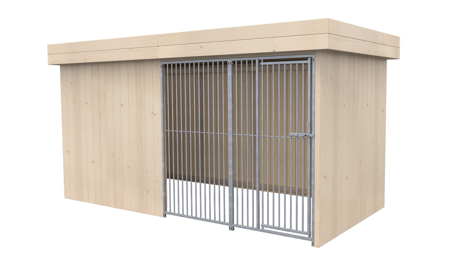 Villa Holz-Hundezwinger 2 x 4 m | Flachdach | naturbelassen | Rohrstab Abstand 5 cm