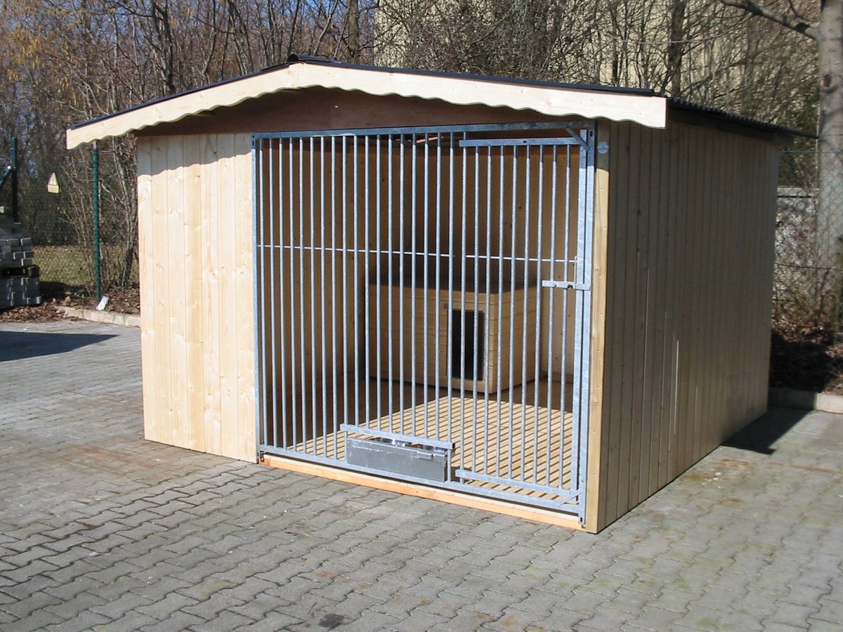 Villa Holz-Hundezwinger 3 x 3 m | Satteldach | naturbelassen | Rohrstab Abstand 5 cm