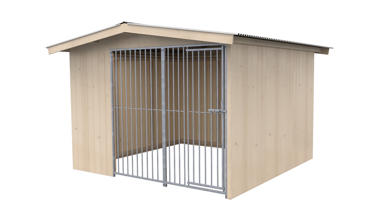 Villa Holz-Hundezwinger 3 x 3 m | Satteldach | naturbelassen | Rohrstab Abstand 8 cm