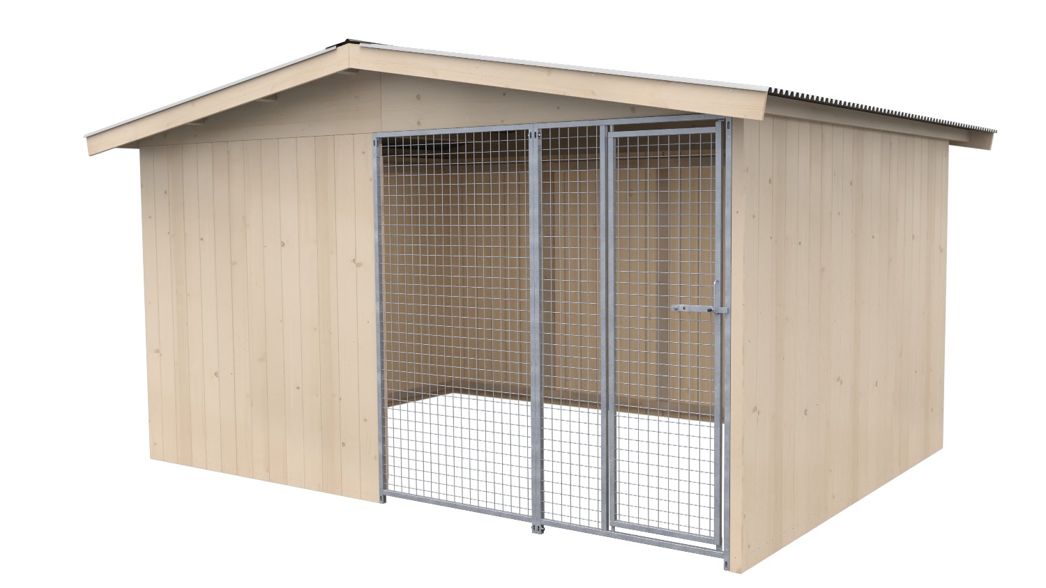 Villa Holz-Hundezwinger 3 x 4 m | Satteldach | naturbelassen | Gitter