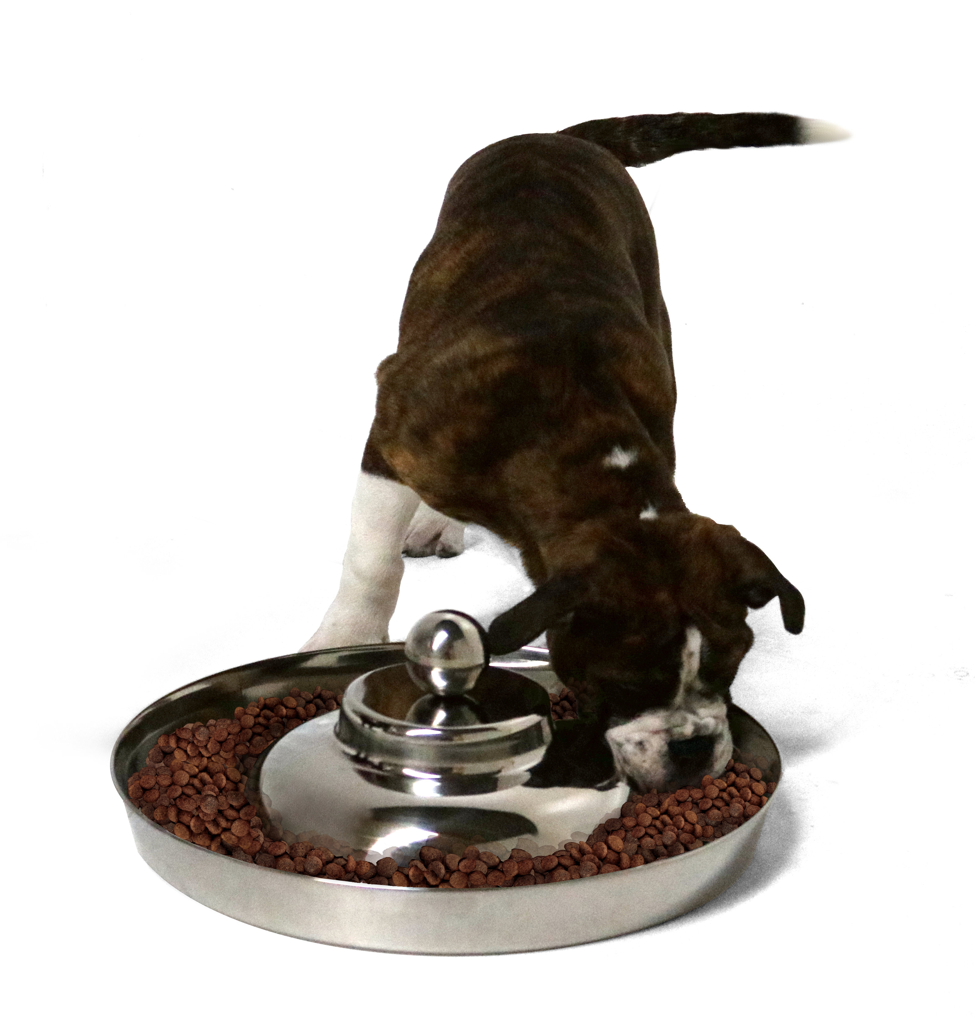 Welpenfutterring Ø39cm, aus rostfreiem Edelstahl, mit Knauf zum Anheben
