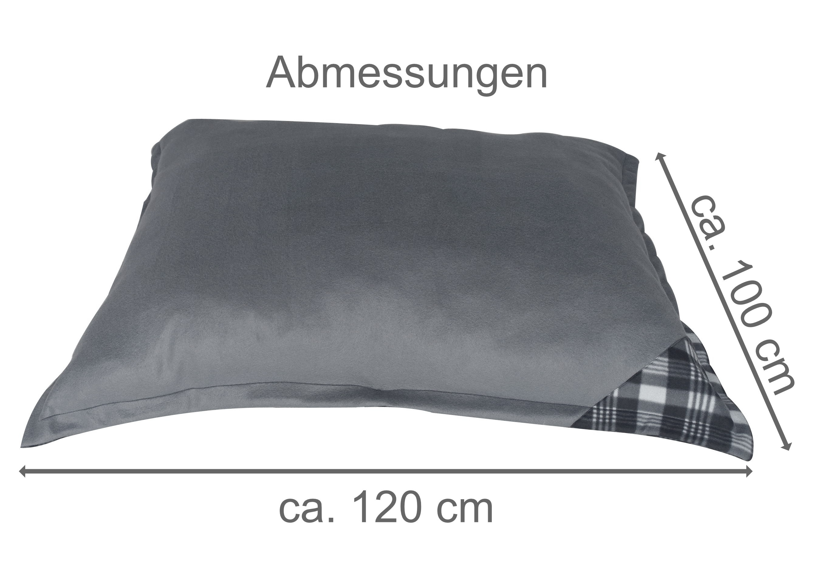 Hundebett / Hundekissen XXXL grau/Karo, 120x100 cm, Wendekissen